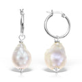 Creole earrings with baroque freshwater pearls, mounted in rhodium-plated silver.
