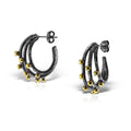 Cercei lucrati manual din argint in baie de rodiu negru cu detalii din argint aurit.