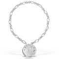 Necklace with a chain made of large rhodium-plated silver links and a spectacular pendant with a geometric design, handmade in silver with a satin-matte finish.