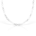 Necklace with a minimalist design, made of geometric elements cut out of rhodium-plated silver.