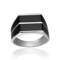 Men's ring with a minimalist design made of rhodium-plated silver with onyx