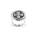 A volumetric ring inspired by ancient seals, featuring an archaic cross.