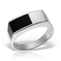 Men's ring with a minimalist design made of rhodium-plated silver with onyx