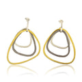 Cercei lucrati manual cu trei elemente concentrice din argint, argint rodiat negru si argint aurit cu finisaj mat-satinat.