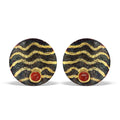Cercei lucrati manual din argint in baie de rodiu negru cu detalii grafice din argint aurit si element din carneol natural.