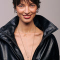 Colier lung din agint rodiat cu detalii minimaliste din cruciulite inspirate de rosariile catolice.