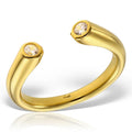 Inel cu design minimalist lucrat din argint aurit cu detalii din zirconii tranparente incastrate in capetele deschise ale inelului.