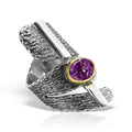 Inel masiv lucrat din argint antichizat cu detaliu central din zirconia fatetata, montata in caseta de argint aurit.