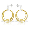 Cercei rotunzi, cu design minimalist, in doua culori satinate mate, lucrati manual din argint si argint in baie de aur